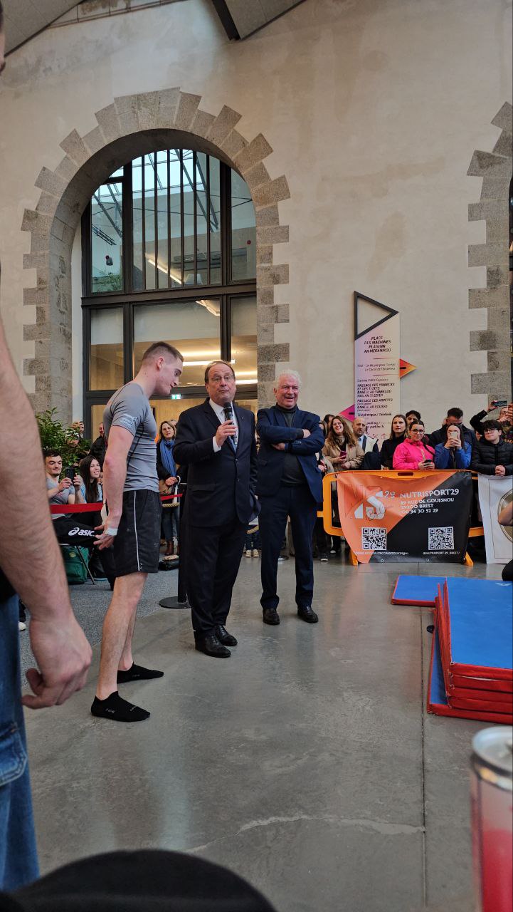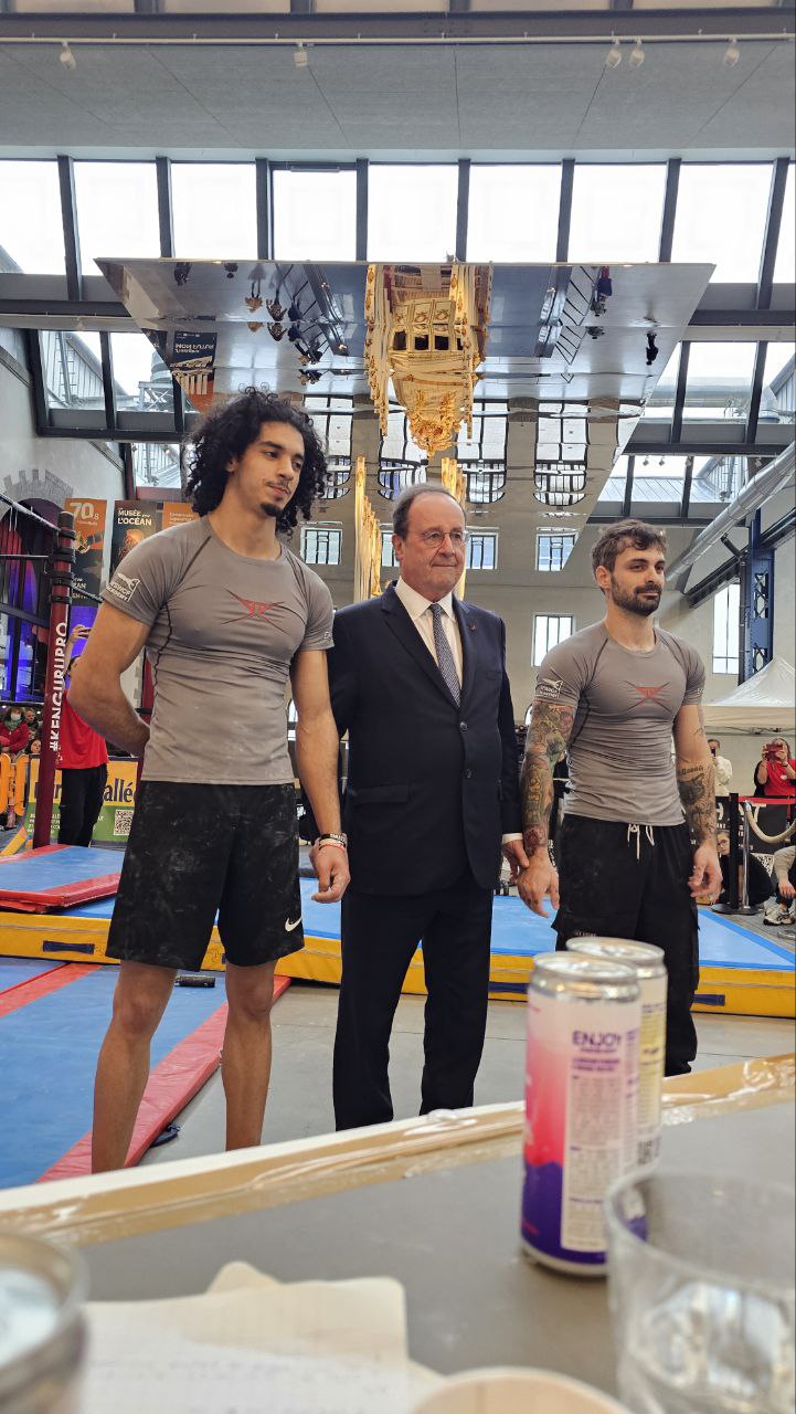 Práve v tejto atmosfére sa odohral moment, ktorý nikto nečakal. Počas súťaže sa na podujatí objavil bývalý francúzsky prezident François Hollande. Mal som tú česť podať si s ním ruku a prehodiť pár slov. Je to dôkaz toho, že street workout už dávno nie je len „cvičenie na ulici“, ale rešpektovaný šport, ktorý láka aj tie najvyššie postavené osobnosti spoločenského života.